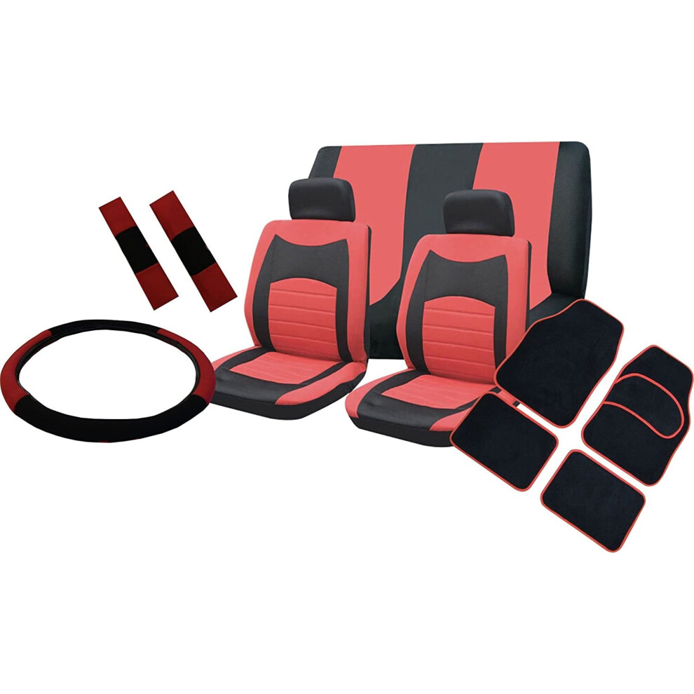 (Red) Seat Cover Set To Fit Mercedes-Benz A Class With Mats And Wheel Cover