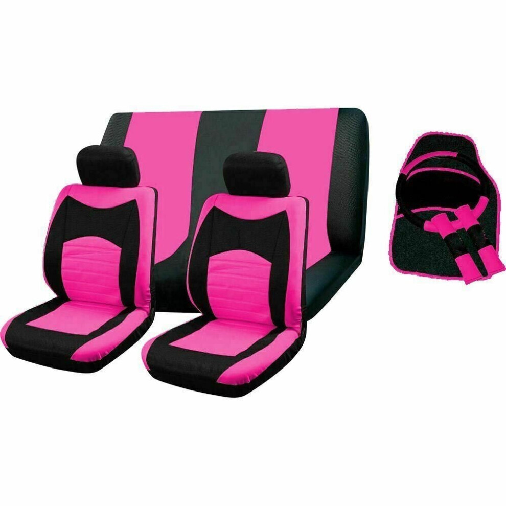 (Pink) Seat Cover Set To Fit Mercedes-Benz A Class With Mats And Wheel Cover