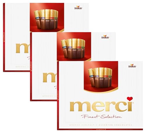 Merci Finest Milk & Dark Chocolate Box, 8 Flavour Varieties, Gluten-Free, Vegetarian Treats with Gold-Wrapped Bars for Gifting, 250 g (Pack of 3)