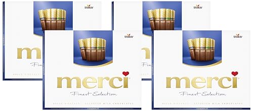 Merci Finest Milk Chocolate Box, 4 Flavour Varieties, Gluten-Free Classic Milk Chocolate Gift Box, 250 g (Pack of 4)