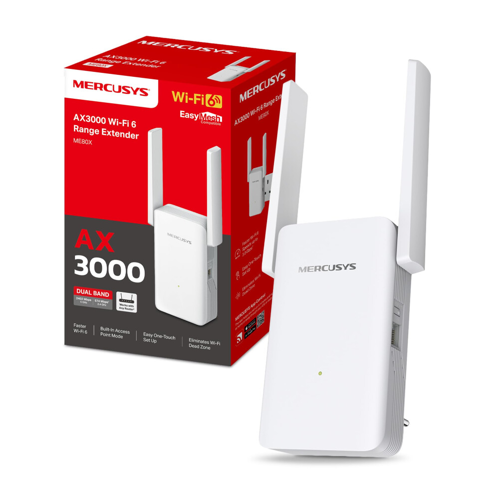 Mercusys ME80X AX3000 WiFi 6 Internet Booster with 2 Adjustable High-Gain Antennas, WiFi Exender Booster, TP link Wifi Extender,Gigabit Wired
