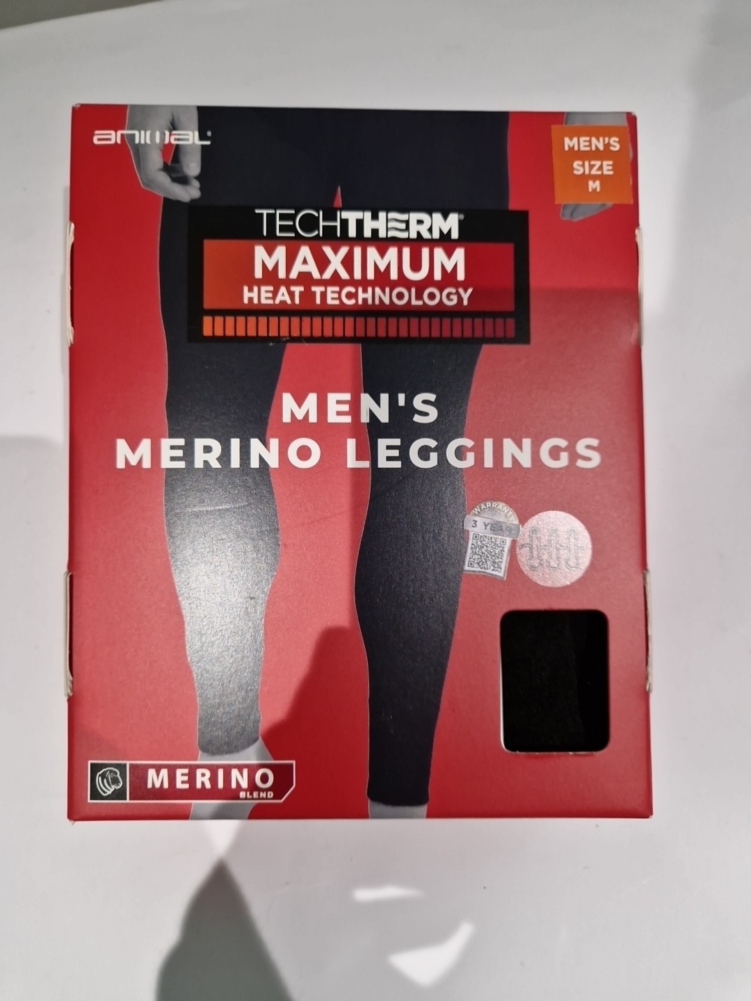 Mountain Warehouse ANIMAL Merino Wool Men's Leggings MEDIUM Black Thermal
