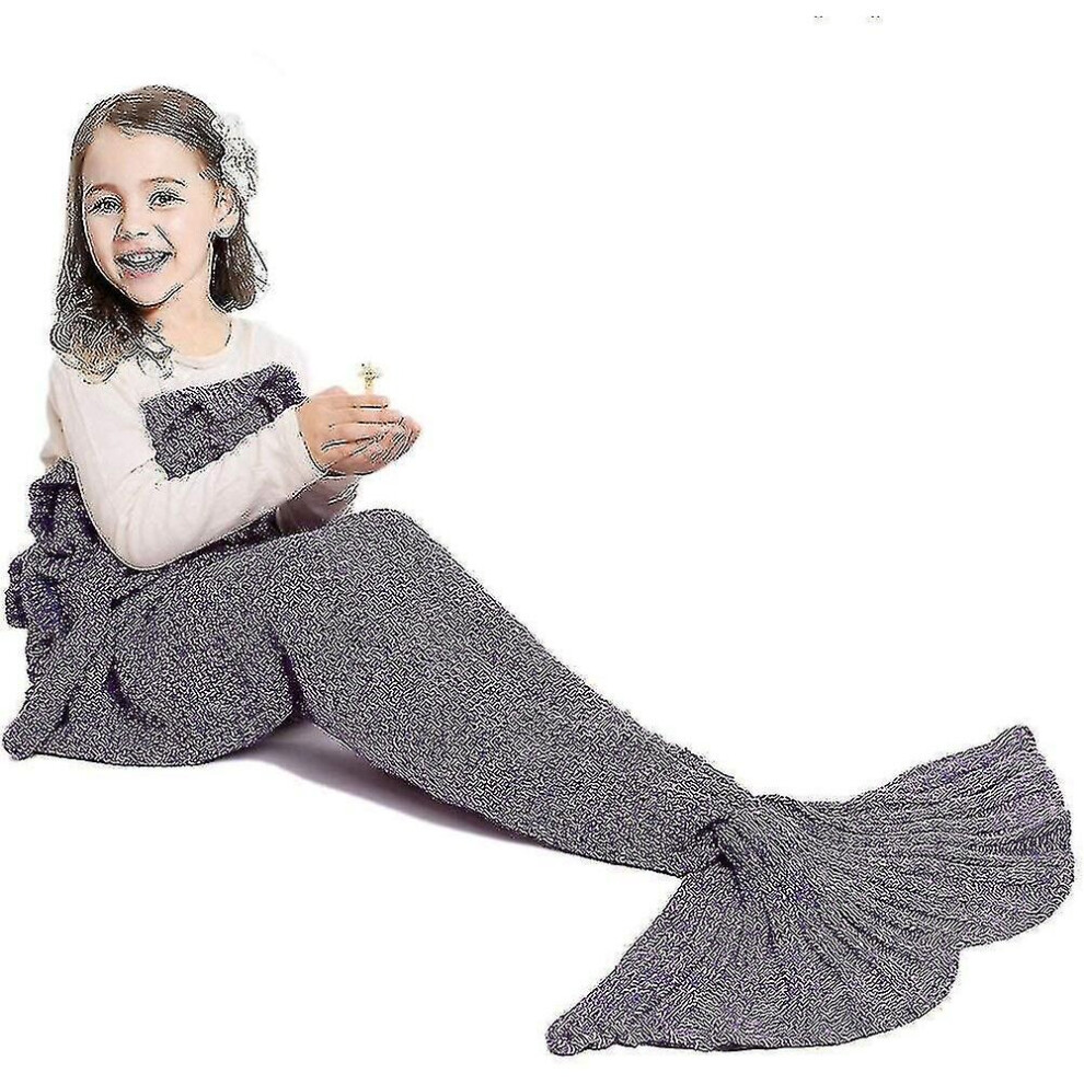 MERMAID TAIL SOFA BLANKET WARM CROCHETED KNIT LAPGHAN CREWEL COVERLET TV COCOON (Grey)