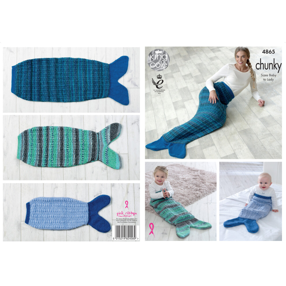 King Cole 4865 Chunky Knitting Pattern Ladies Kids Mermaid Blanket
