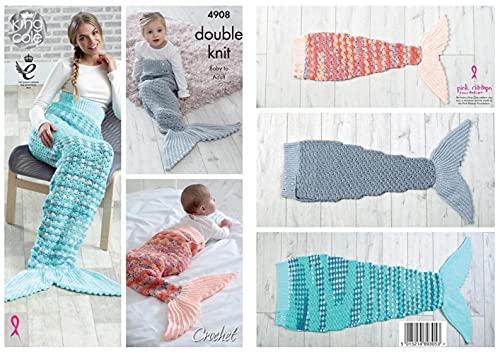 King Cole 4908 Crochet Pattern Baby Child Adult Mermaid Tail Blanket in DK, Various Sizes