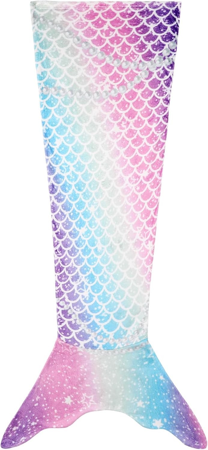 Catalonia Classy Mermaid Tail Blanket for Kid Gift - Wearable Blanket 114 x 41 cm, Soft Plush Flannel Sleeping Bag for Girls All Seasons, Shiny Clear Sky Pattern