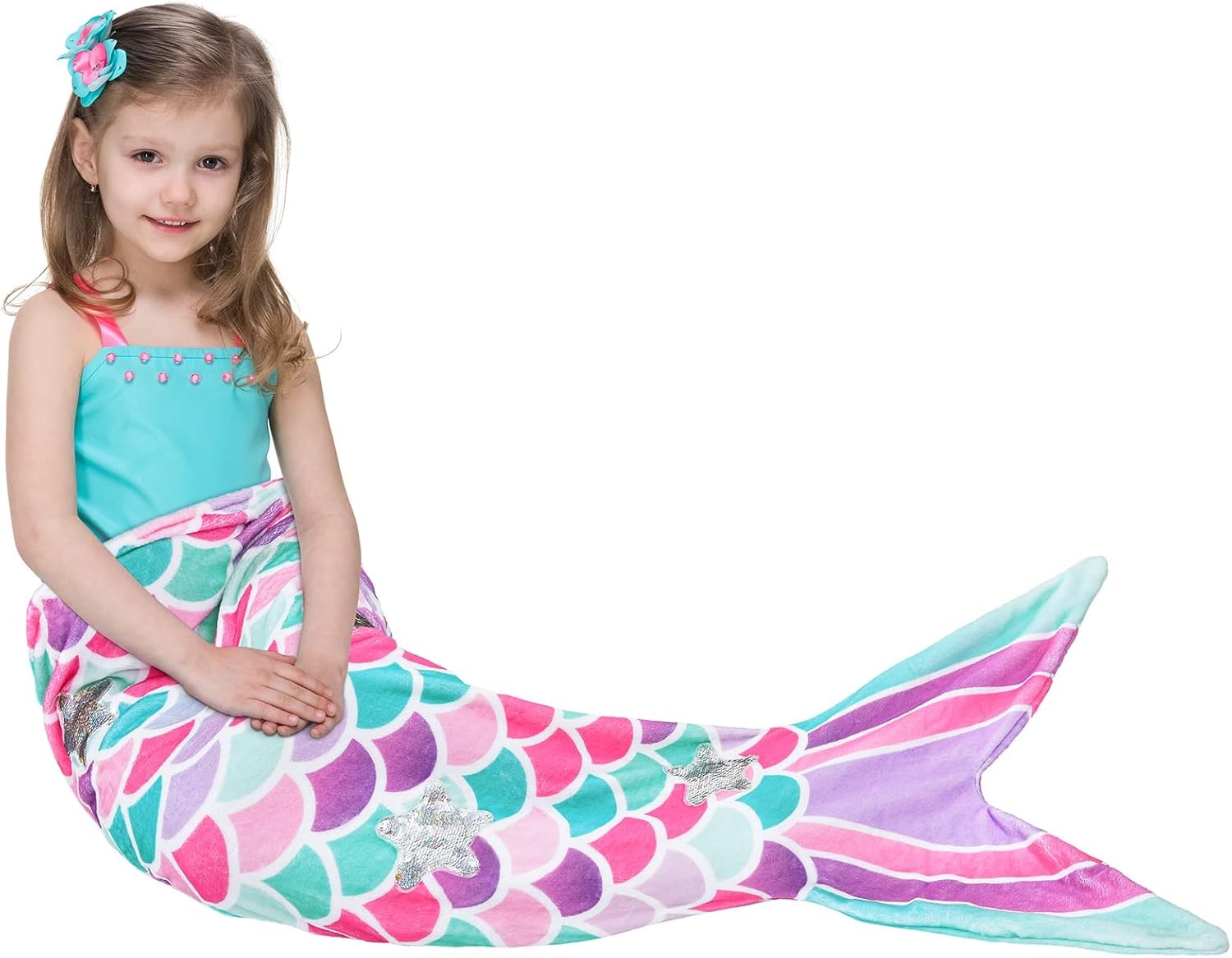 Mermaid Tail Blanket - Wearable Mermaid Soft Blanket with Glitter Stars Sequin H