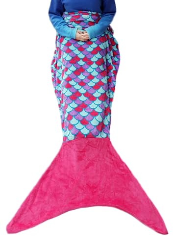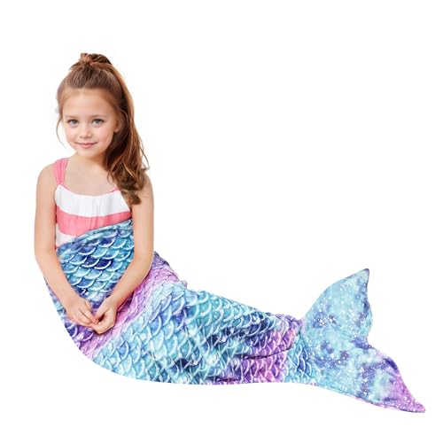 Catalonia Mermaid Tail Wearable Blanket Gift, Soft Flannel Fleece Mermaid Sleeping Bags for Kids Girls All Seasons, Colorful Scale Snuggle Blanket Birthday Gift, 155 x 48 cm