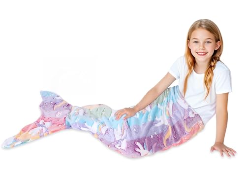 Mermaid Tail Blanket - Plush Mermaid Wearable Blanket for Girls Kids Teens Rainb