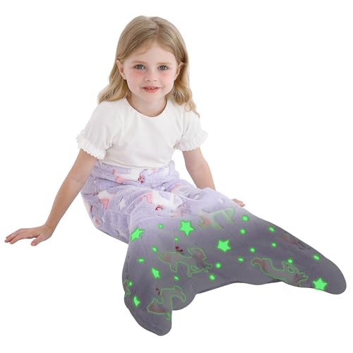 WHAMVOX Glow Dark Soft Plush Mermaid Tail Blanket for Wearable Unicorn Design Lightweight Travel-friendly Fish Tail Blanket for Home Sleepovers and Cozy Bedtime