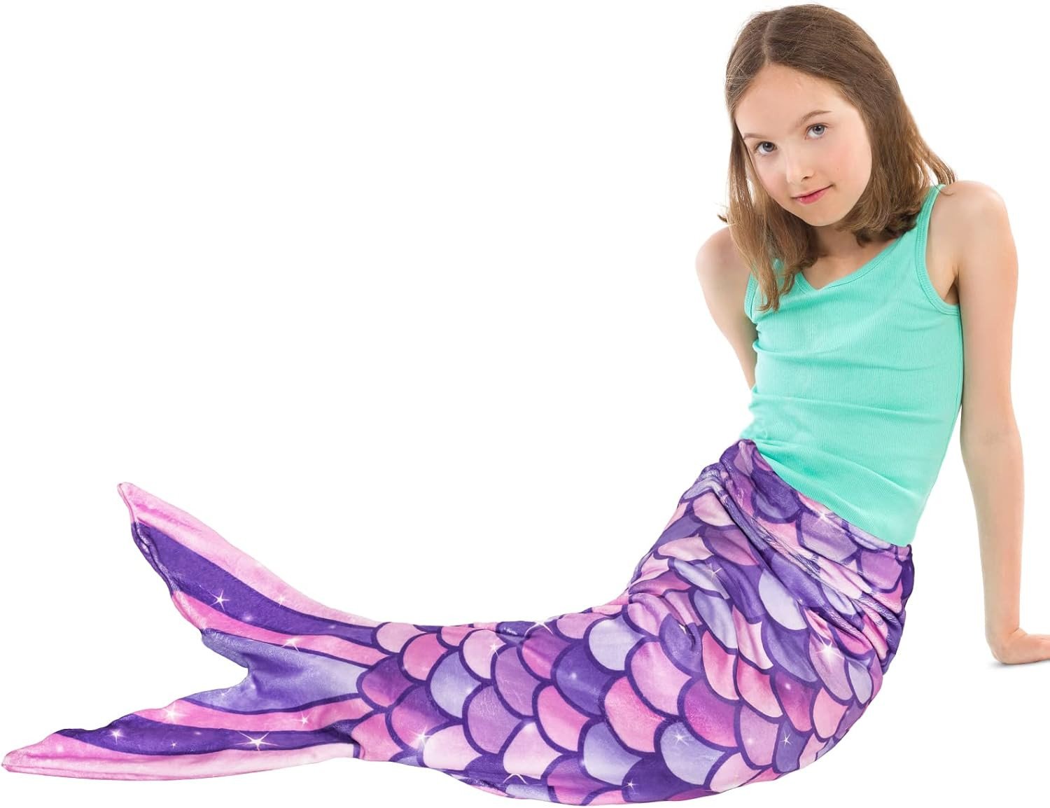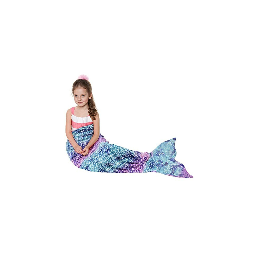 catalonia Kids Mermaid Tail Blanket, Super Soft Plush Flannel Sleeping Snuggle Blanket for Teen girls, galaxy, Fish Scale Pattern, gift Idea