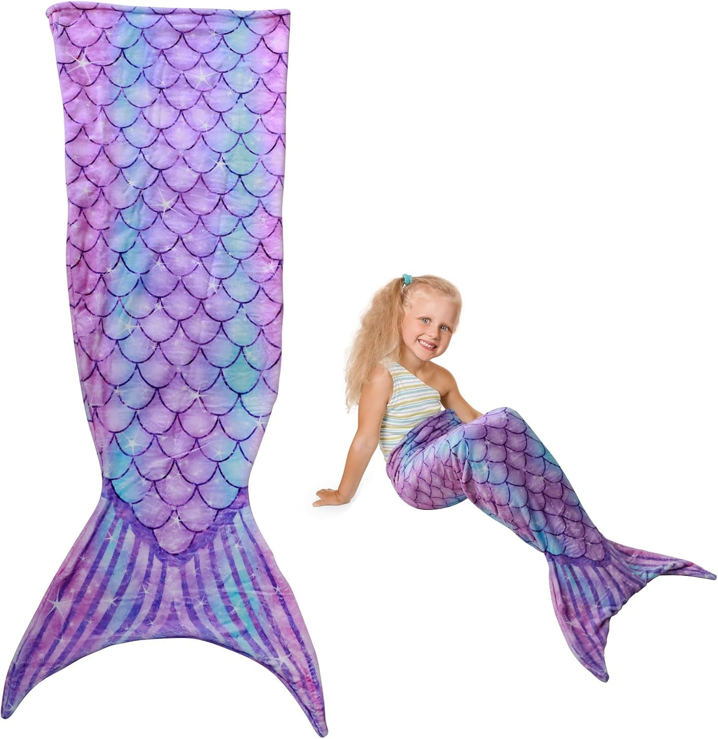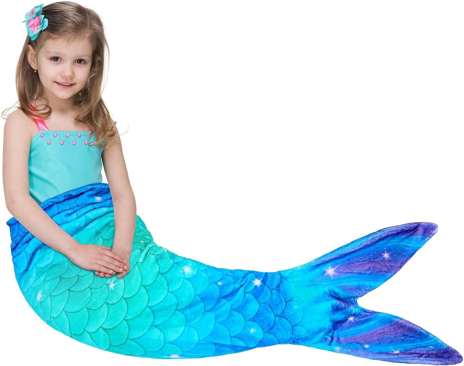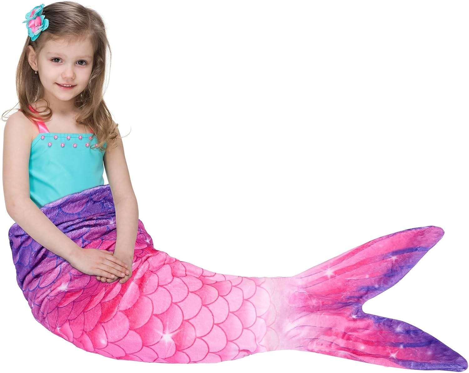 50x145cm Mermaid Tail Blanket, Little Blanket for Girls Gifts,...