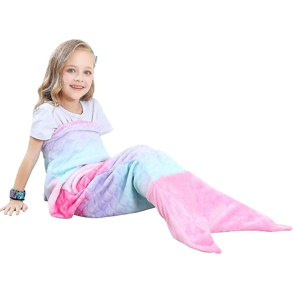 Mermaid Tail Blankets glittering Wearable cute cozy Soft Flannel Rainbow colorful Mermaid Tail Blanket for Kids 512 Year