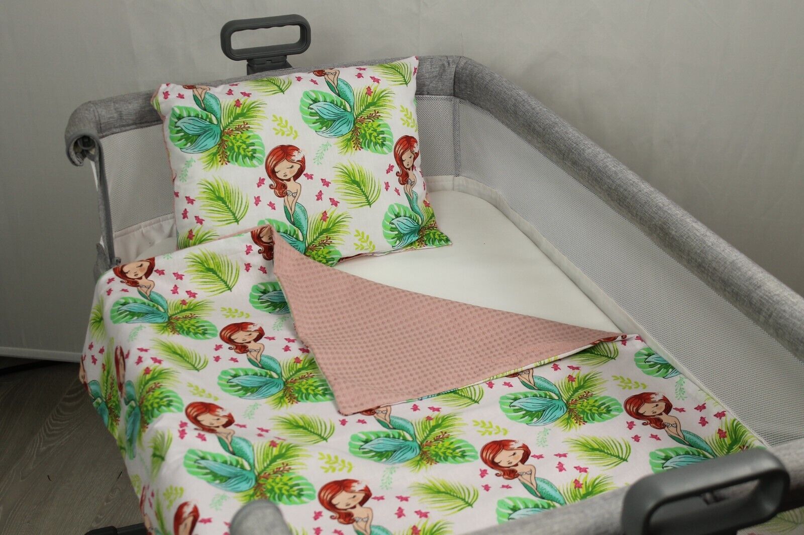 2pc baby blanket set for bedside crib pram cradle GIRL MERMAID waffle cotton