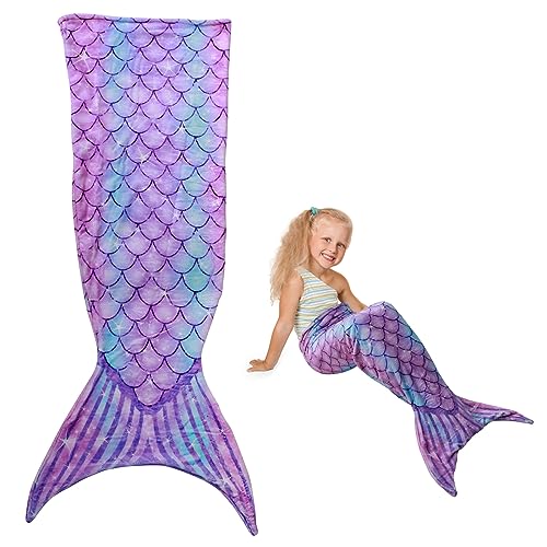 50x145cm Mermaid Tail Blanket, Little Mermaid Blanket for Girls Gifts, Ultra-Soft Flannel Sleeping Blanket Fish Scale Pattern Snuggle Blanket for Toddlers Teens Birthday (Purple)