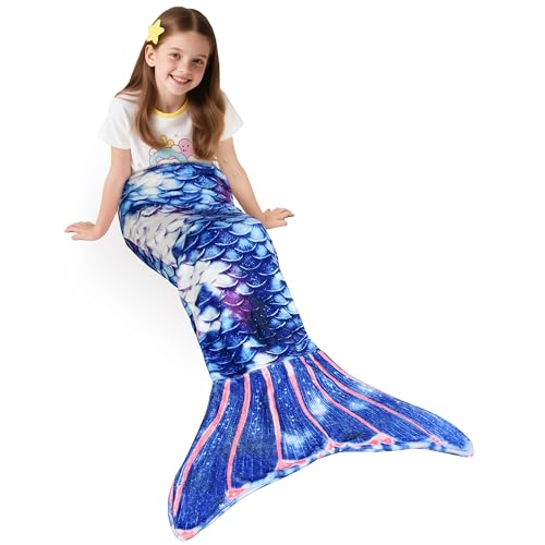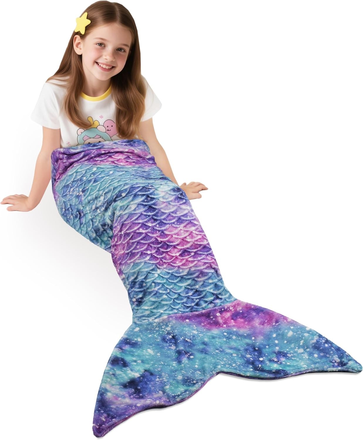 WERNNSAI Mermaid Tail Blanket - Plush Mermaid Wearable Blanket for Girls Kids T