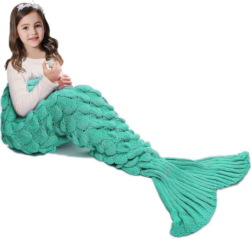 Mermaid Tail Blanket for Girls, Mermaid Sleeping Bag for Kids, Handmade Knitted