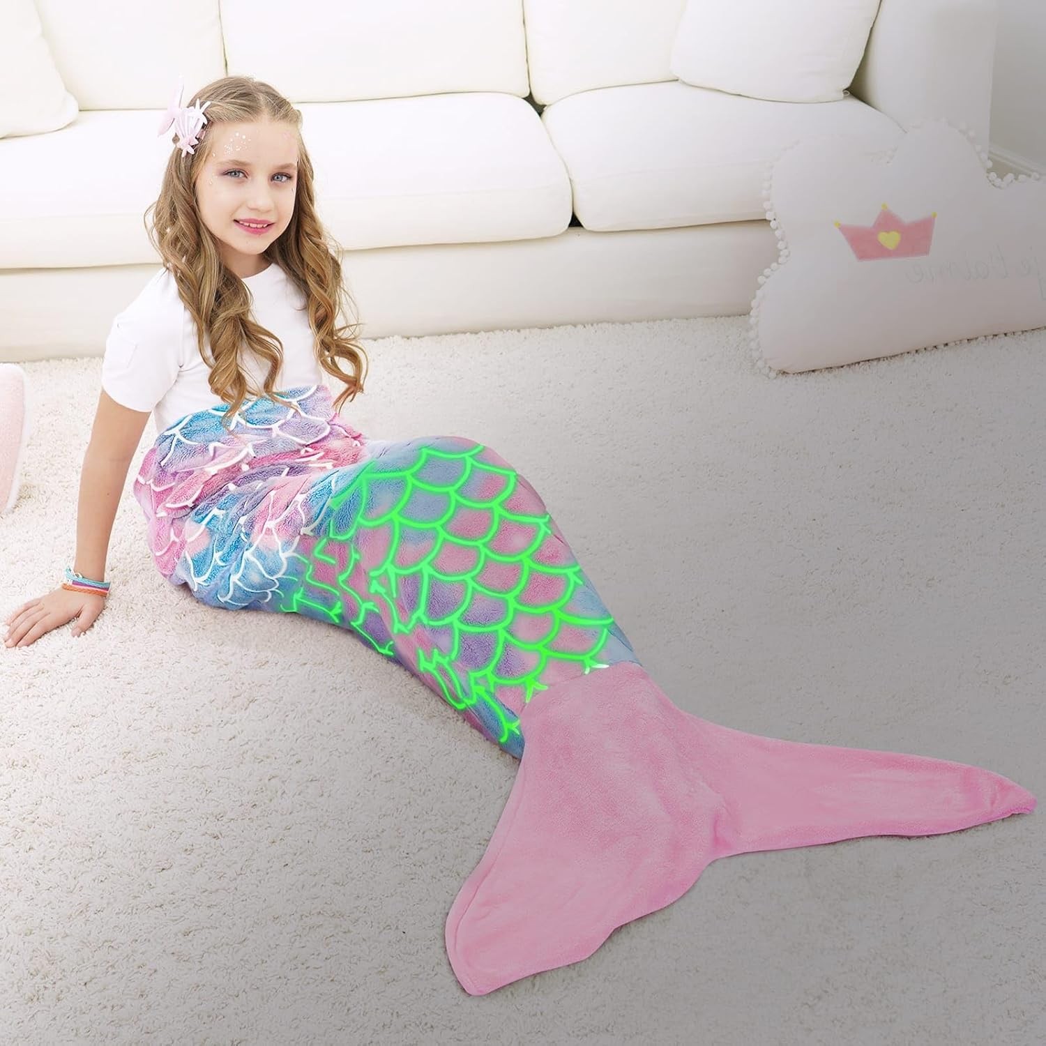 WERNNSAI Mermaid Tail Blanket - Glow in the Dark Mermaid Wearable Blanket for G
