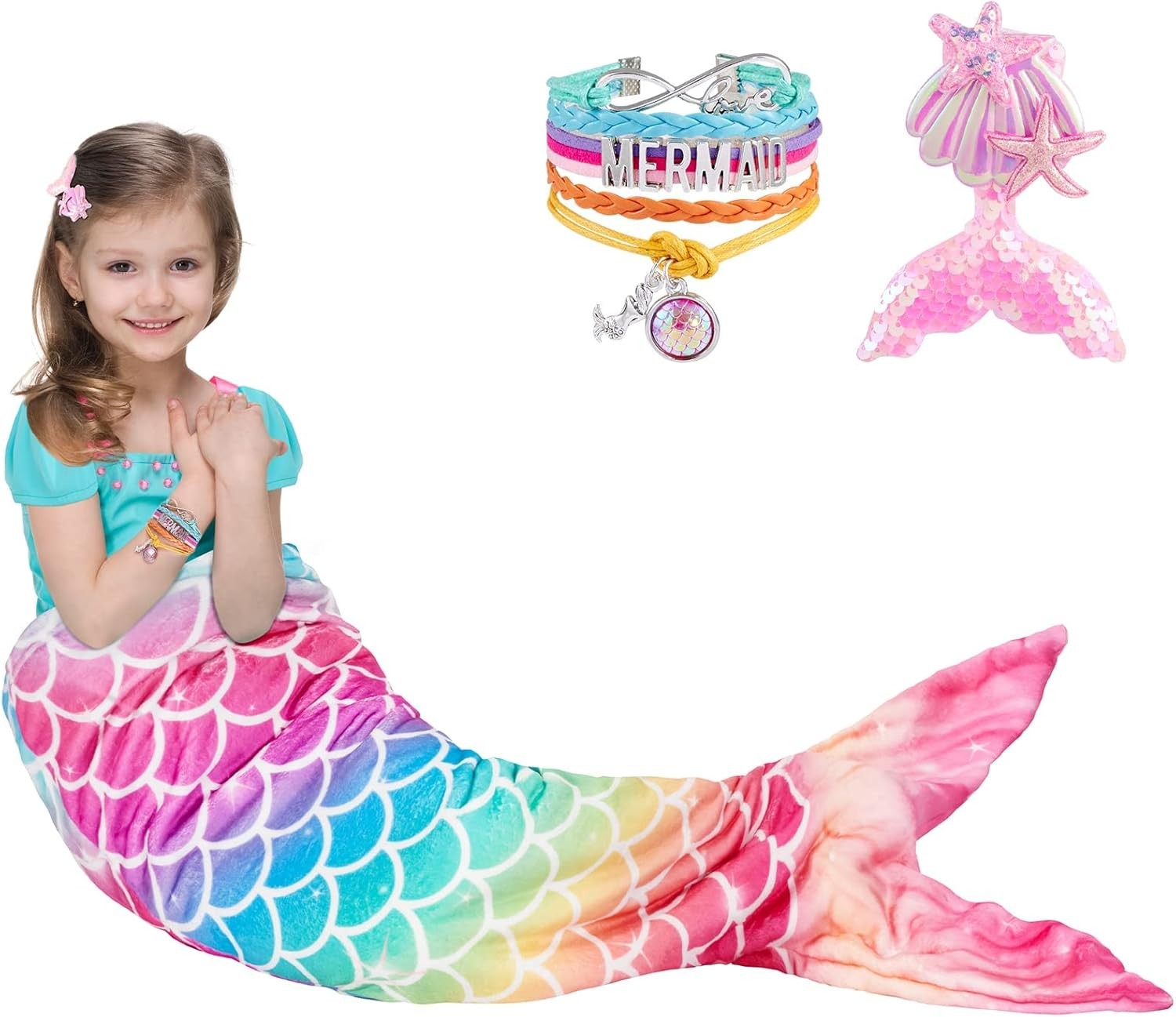 WERNNSAI Mermaid Tail Blanket - Mermaid Wearable Blankets for Kids Girl All Sea