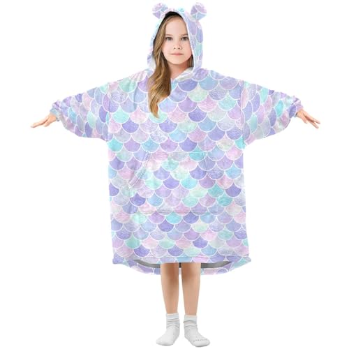 Mnsruu Blanket Hoodie for Kids Fish Mermaid Scale Oversized Warm Fleece Hoodie Blanket Wearable Sweatshirt Plush Girls Boys