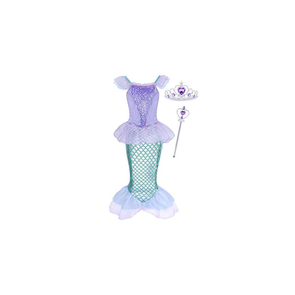 KumSoomliy Girls Princess Costume Dress Princess Fancy Party Dressing up Dresses Fairy Tales Childs Outfits Evening Clothes Mermaid Outfit Age 5-6 Years 130