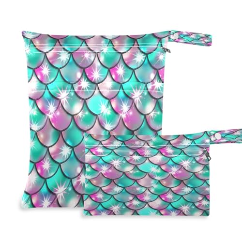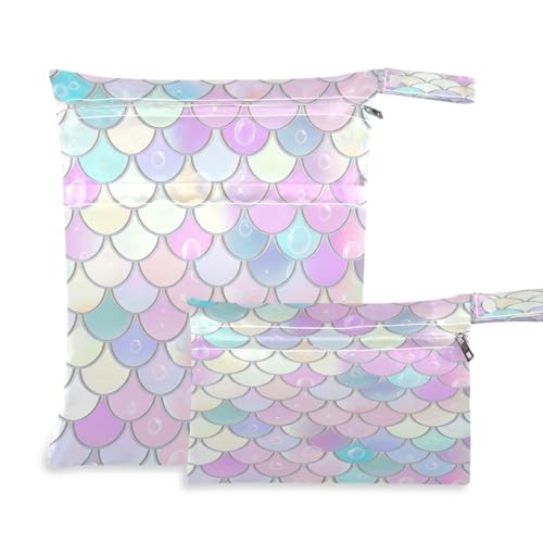 Waassud Colorful Scales Mermaid Wet Dry Bag Reusable Wet Bags Organizer Diaper Bag Organizing Pouches with 2 Zippered Pockets for Swimsuit Gym Clothes