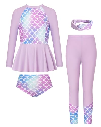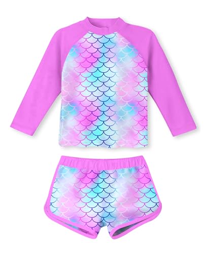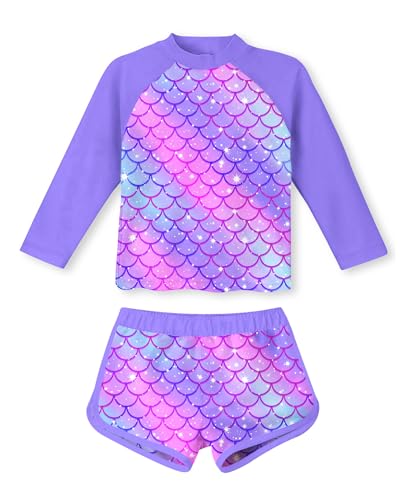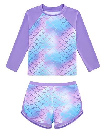 TUONROAD Girls Swimming Costume Kids Two Piece Long Sleeve Swimsuit UPF 50+ Protection Swimwear for Summer Beach Bathing Suit Purple Mermaid 3-4 Years