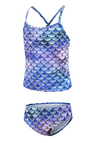 Hawaiian Mermaid Scale Swimwear - Girls' Two Piece Swimsuit Tankini, Age 6-7