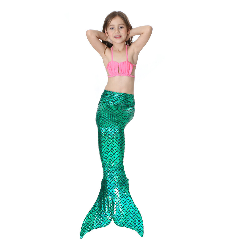 (Green, 110CM) Girls' swimsuit bikini sequin mermaid tail suit swimsuit swimsuit shawl