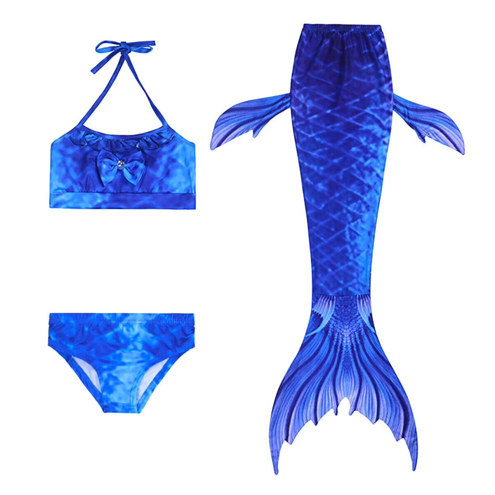 (L, Type D) 3pcs/Set Mermaid Tail Swimsuit Swimwear Summer Swimpool Swim Beach Kids Girls