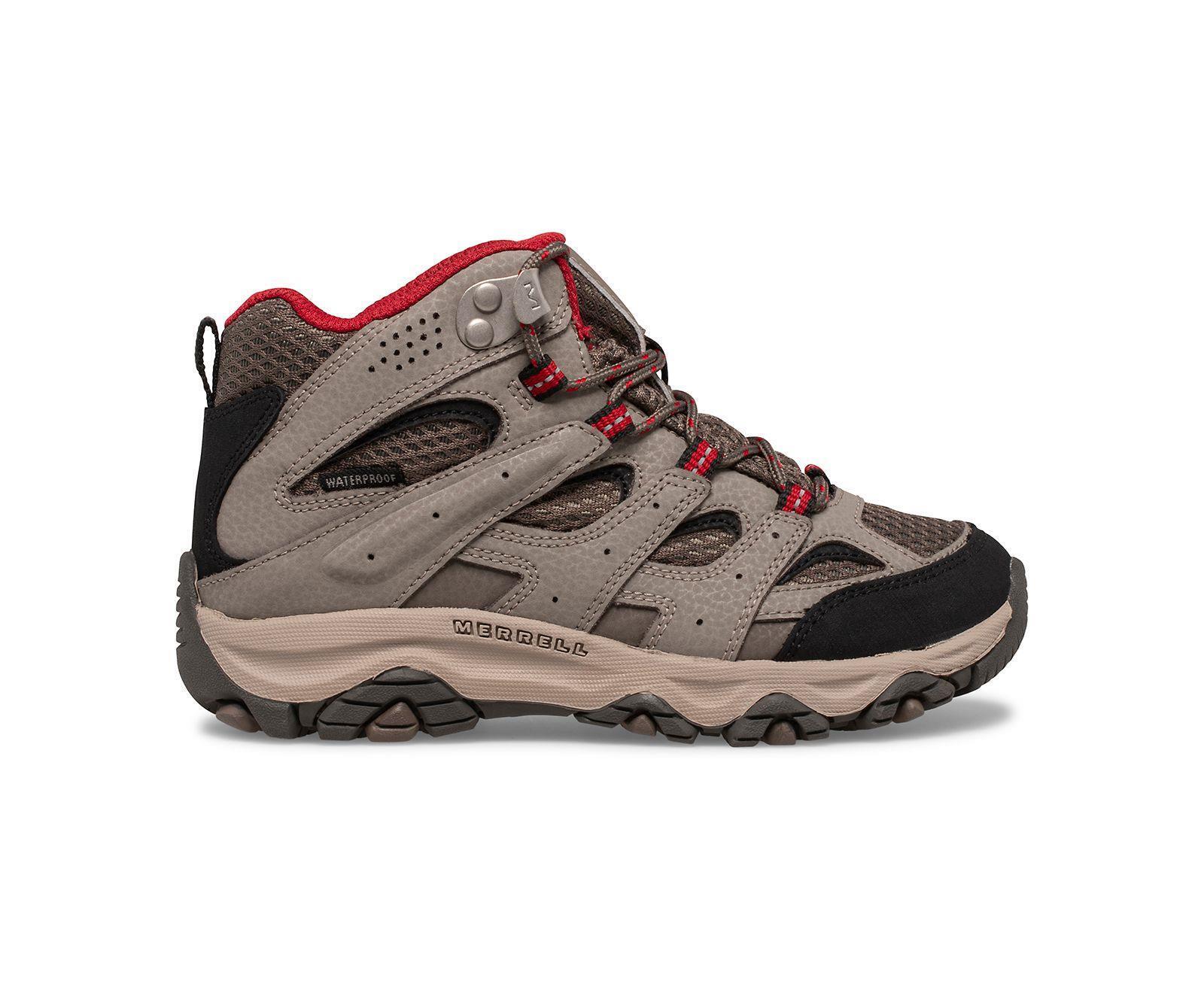 Merrell Moab 3 Mid Waterproof Boot Big Kids in Boulder/Red