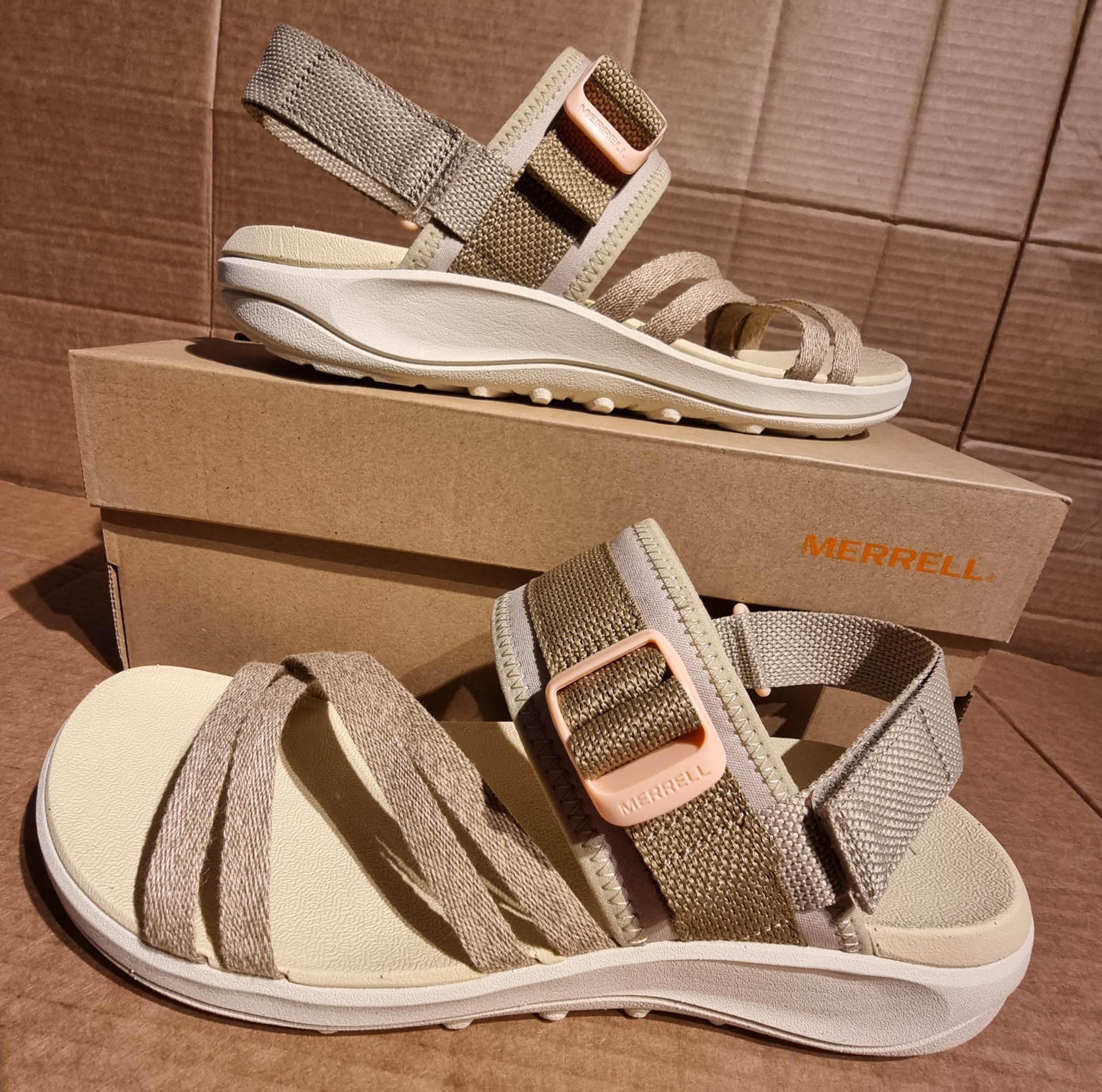 Merrell Women's UK7, Backstrap Sandals in Khaki/Beige - Hiking/Walking Slip-Ons