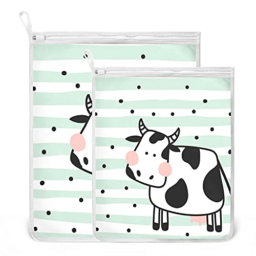 Oyihfvs Cow On Polka Dots Texture 2 Pack Mesh Laundry Bag for Bra, Socks, Shoes, Polyester Reusable Machine Washable Mesh Bags, Travel Dirty Bag for Home Camp Trip
