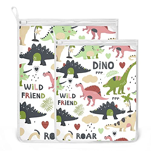 Oyihfvs Dinosaurs Dino Seamless Colorful 2 Pack Mesh Laundry Bag for Bra, Socks, Shoes, Polyester Reusable Machine Washable Mesh Bags, Travel Dirty Bag for Home Camp Trip