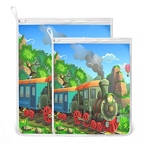 Oyihfvs Train in The Mountains Green 2 Pack Mesh Laundry Bag for Bra, Socks, Shoes, Polyester Reusable Machine Washable Mesh Bags, Travel Dirty Bag for Home Camp Trip