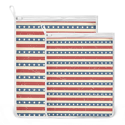 Oyihfvs American US Stripes and Stars 2 Pack Mesh Laundry Bag for Bra, Socks, Shoes, Polyester Reusable Machine Washable Mesh Bags, Travel Dirty Bag for Home Camp Trip