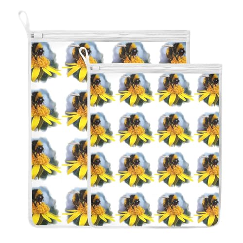 Oyihfvs Bumblebee Yellow Flower 2 Pack Mesh Laundry Bag for Bra, Socks, Shoes, Polyester Reusable Machine Washable Mesh Bags, Travel Dirty Bag for Home Camp Trip