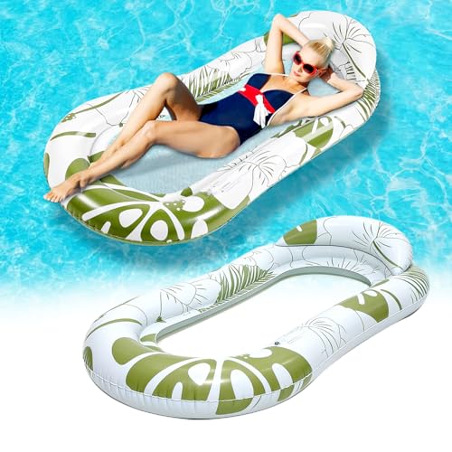 GEEZY Inflatable Water Hammock Float, Set of 2 - Durable PVC Lilo, Mesh Center, 4-in-1 Design, Easy to Inflate, Portable - Relaxing Summer Adult Floats for Swimming Pools, Lakes, Beaches