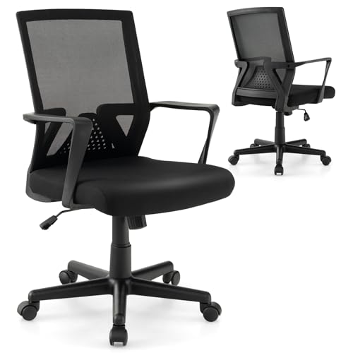 Yaheetech Black Adjustable Office Chair Executive Computer Chair Mid-Back Ergonomic Desk Chair Office Swivel Mesh Chair with Armrest Back Support and Wheels for Home Study or Work Task