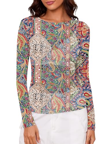 IECCP Mesh Tops for Women UK Sexy Slim Fit Y2K Crop Tops Long Sleeve See Through Blouse for Party Club Going Out Paisley XL