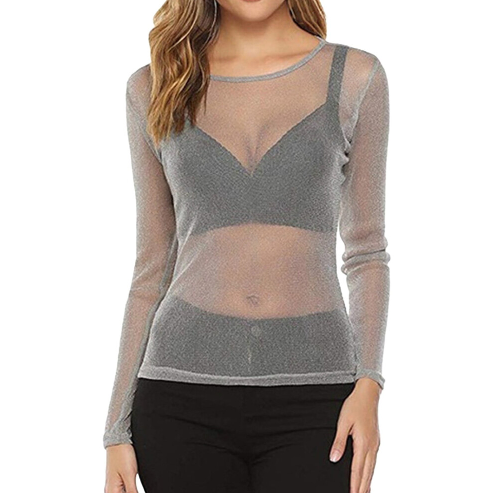 Sheer Tops for Women, Mesh Long Sleeve Tops for Women, See Through Tops for Women, Fitted Shirts for Women, Gray M