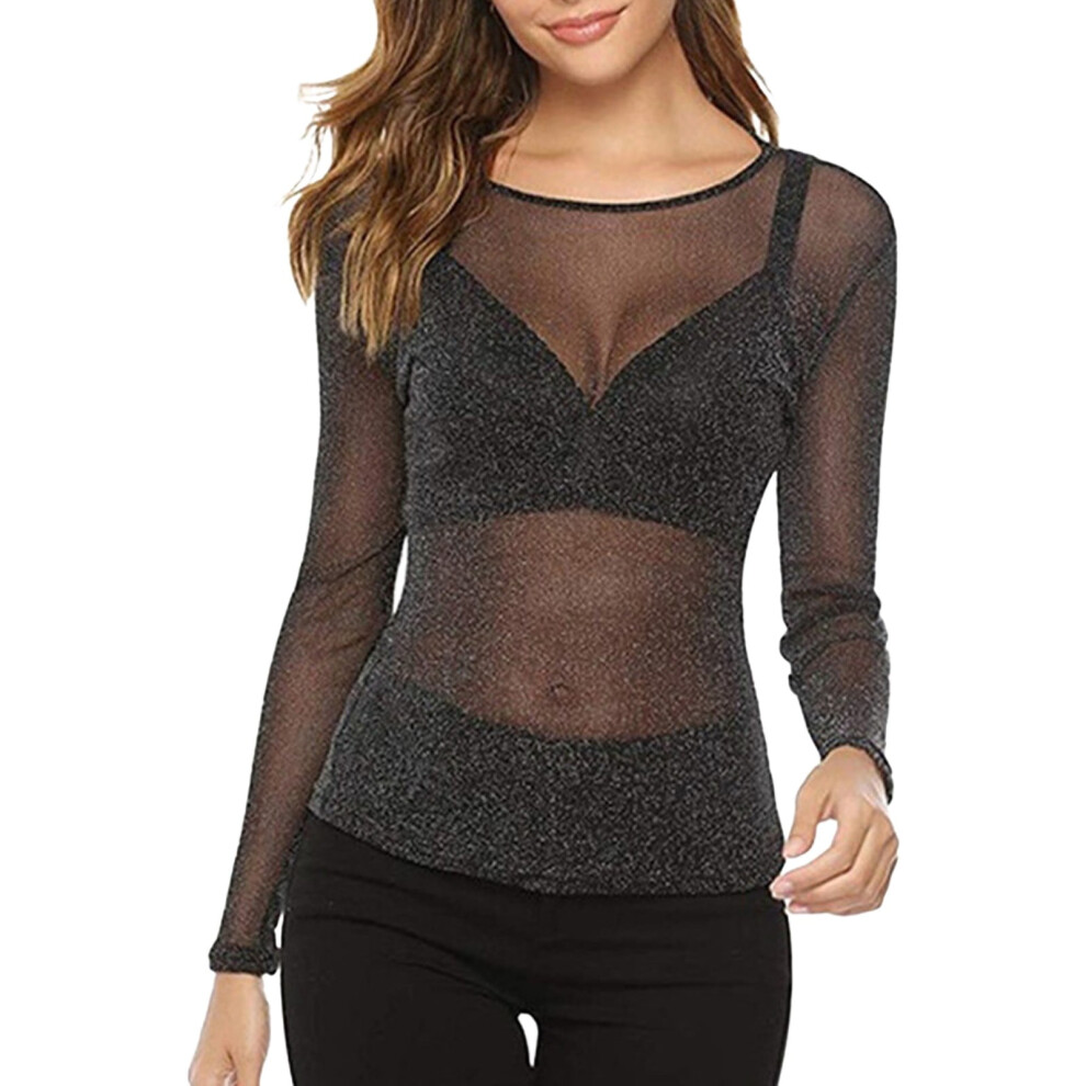 (black, M) Lightweight And Versatile Sexy Mesh Tops For Women Comfort Party Tee