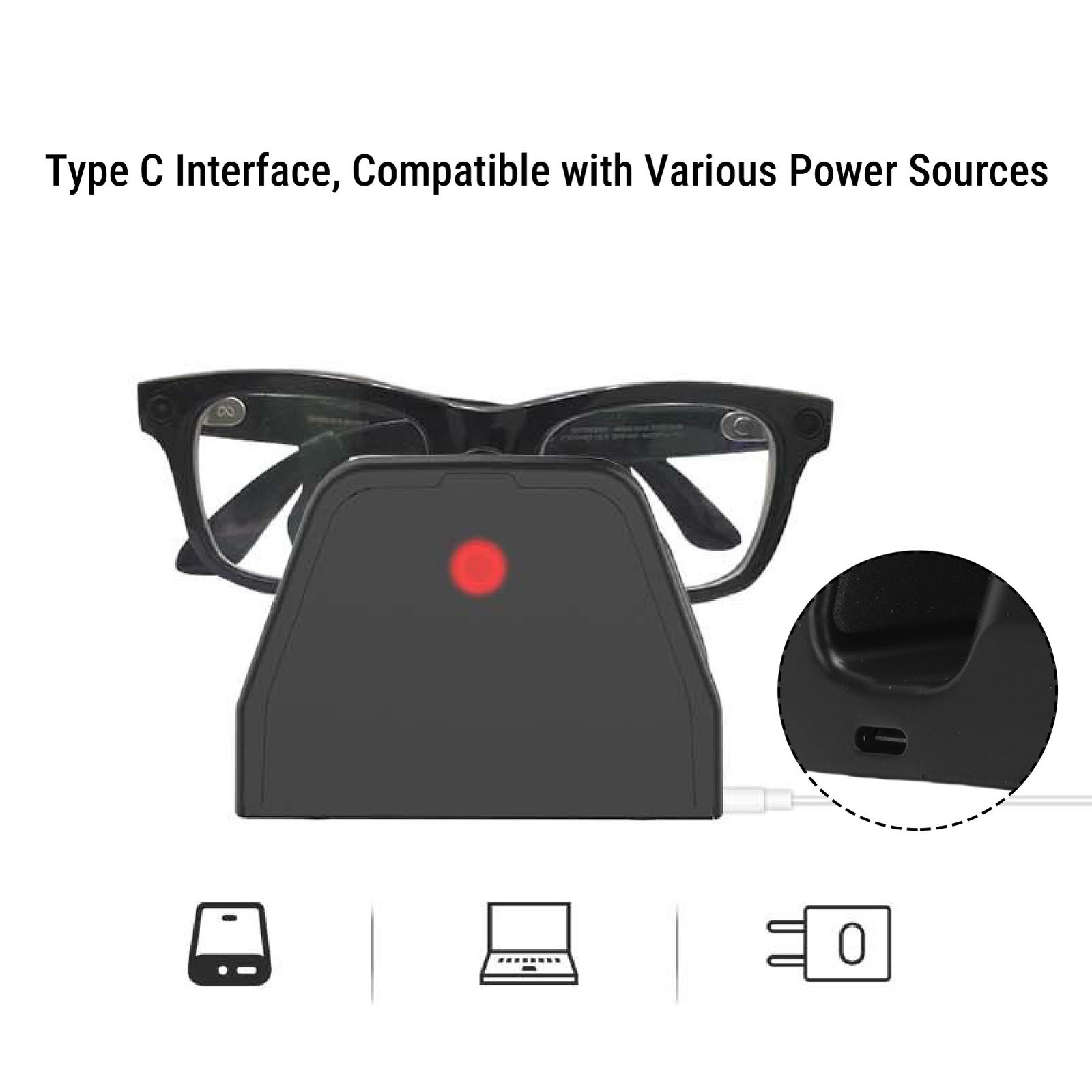 Charging Dock for Meta Smart Glasses Portable Travel Charger Station Type-C Adapter with LED Indicator