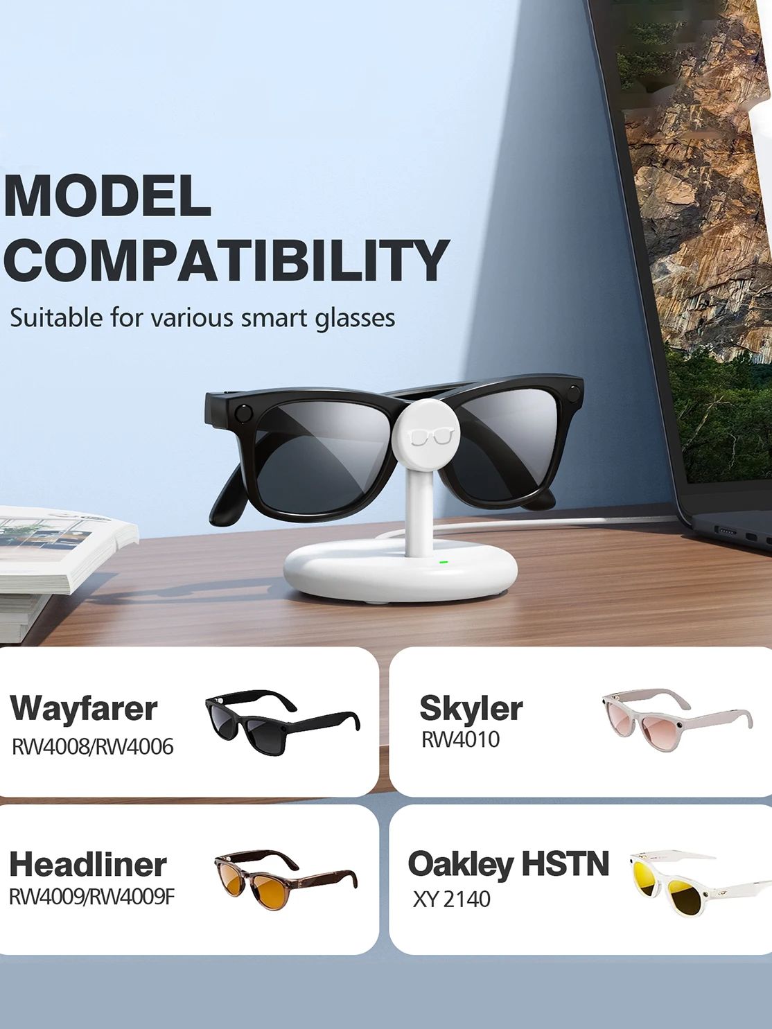 Magnetic Charging Dock For Meta Skyler Smart Glasses LED Indicator