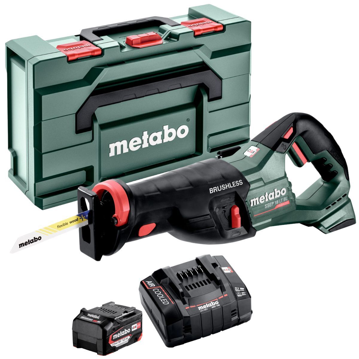 Metabo SSEP 18 LT BL 18V Brushless Sabre Saw 1 x 5.2Ah Battery Charger & Metabox