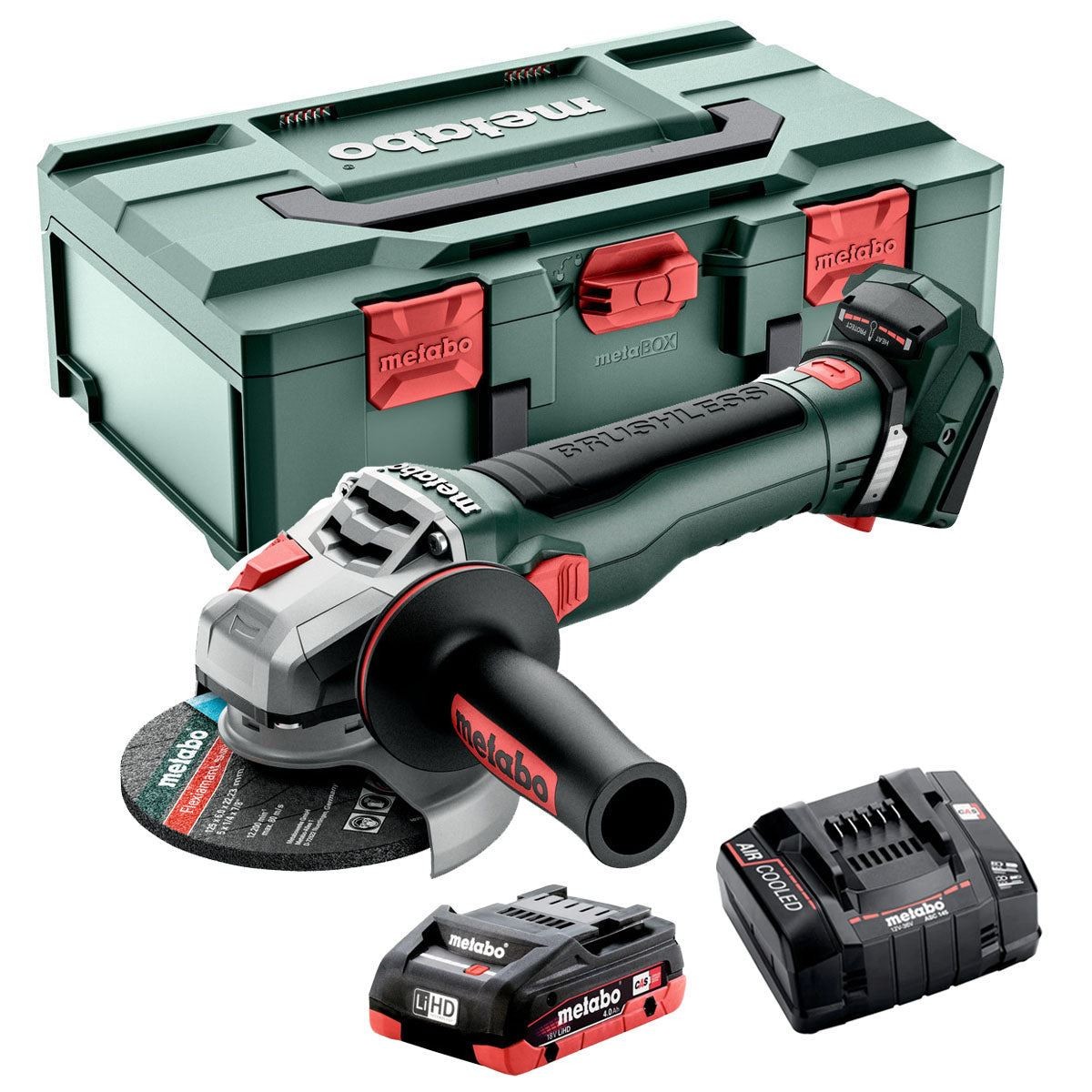 Metabo WB 18 LT BL 11-125 18V Brushless Angle Grinder 1 x 4.0Ah Battery Charger
