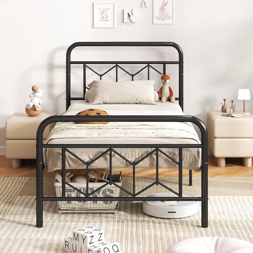 costoffs Single Bed Frame, Slatted Metal Bed Base with Cross-design Headboard & Footboard, Stable Mattress Foundation with Large Storage Space, No Box Spring Needed, Black