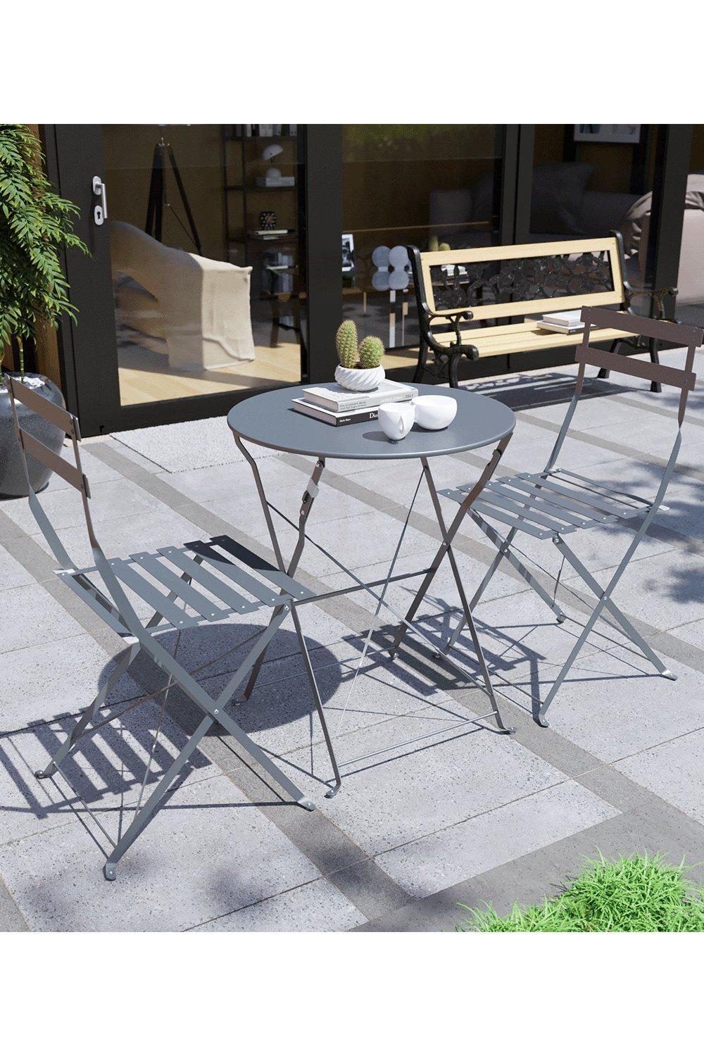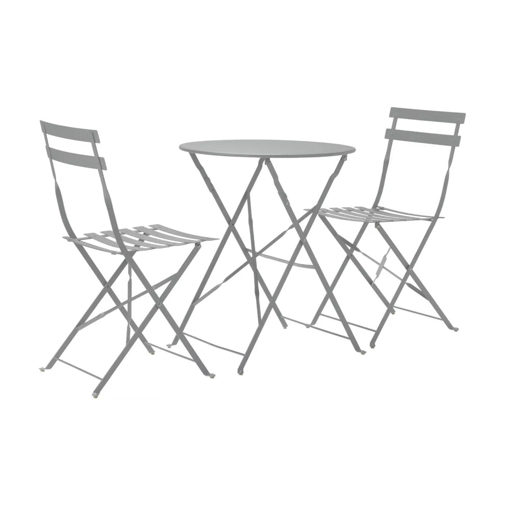 GSD Eve Metal Bistro Garden Set Folding 3pc Set. Perfect For Patios or Balconies! - Choice Of Colours (Grey)