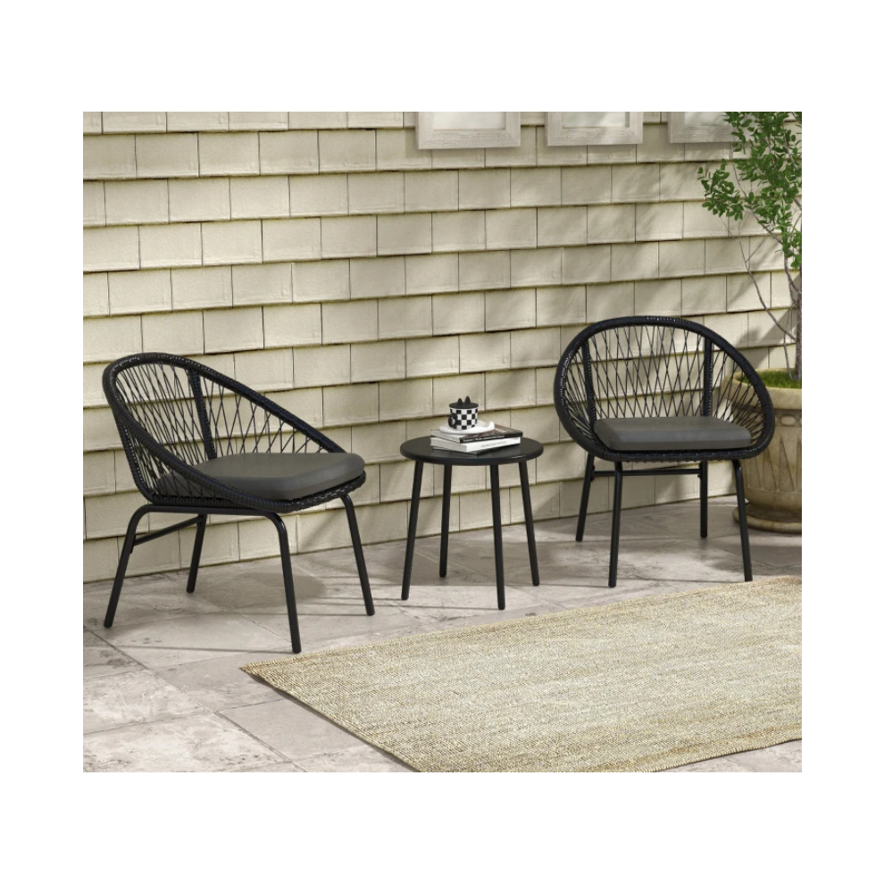 Belize Textured PE Rattan Outdoor 2 Seat & Round Table Garden Bistro Set With Black Metal Hairpin Legs