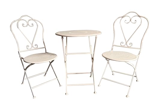 Durable Stylish 3-Piece Metal Bistro Set with Cream Finish and Foldable Chairs - Weather-Resistant Outdoor Furniture for Patio, Lawn, Home, Garden & Bird Lovers (Silver)